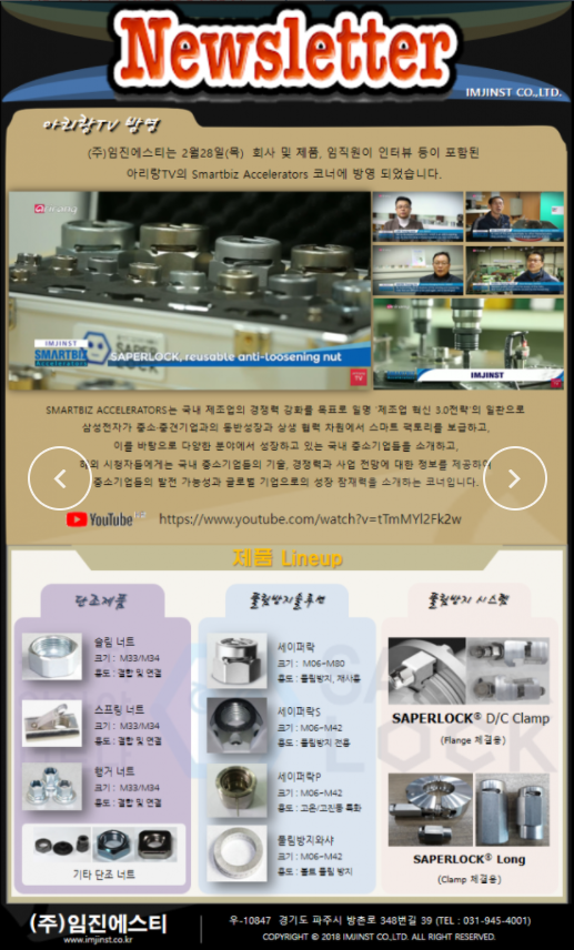 (주)임진에스티 | 대표자: 임영우 | 사업자번호: 128-81-50957 | 본사: 충북 제천시 바이오밸리로 64 (왕암동) | 공장: 경기도 파주시 방촌로 348번길 39